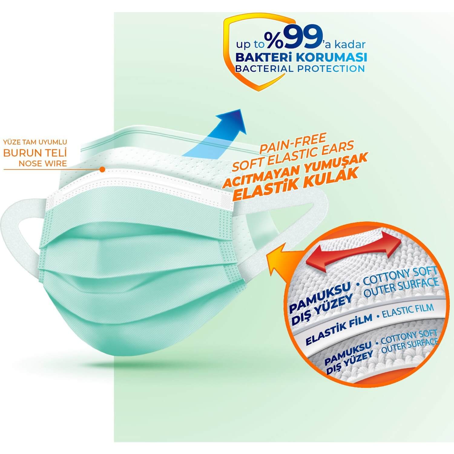 Evony Yumuşak Elastik Kulaklı Maske 50'li